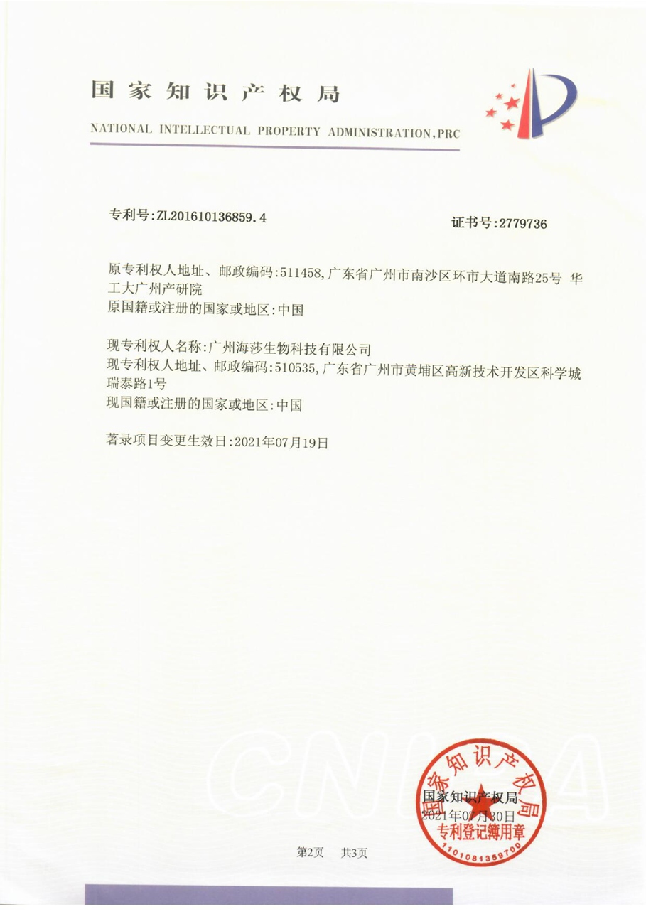 • 廣州海莎生物科技有限公司獲磷脂生產(chǎn)新專利,為開發(fā)高質(zhì)量磷脂 產(chǎn)品提供了保障。